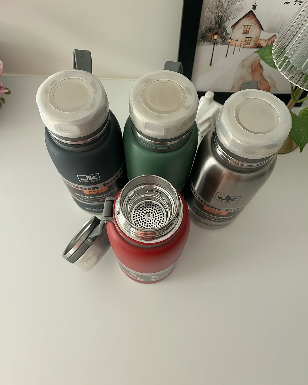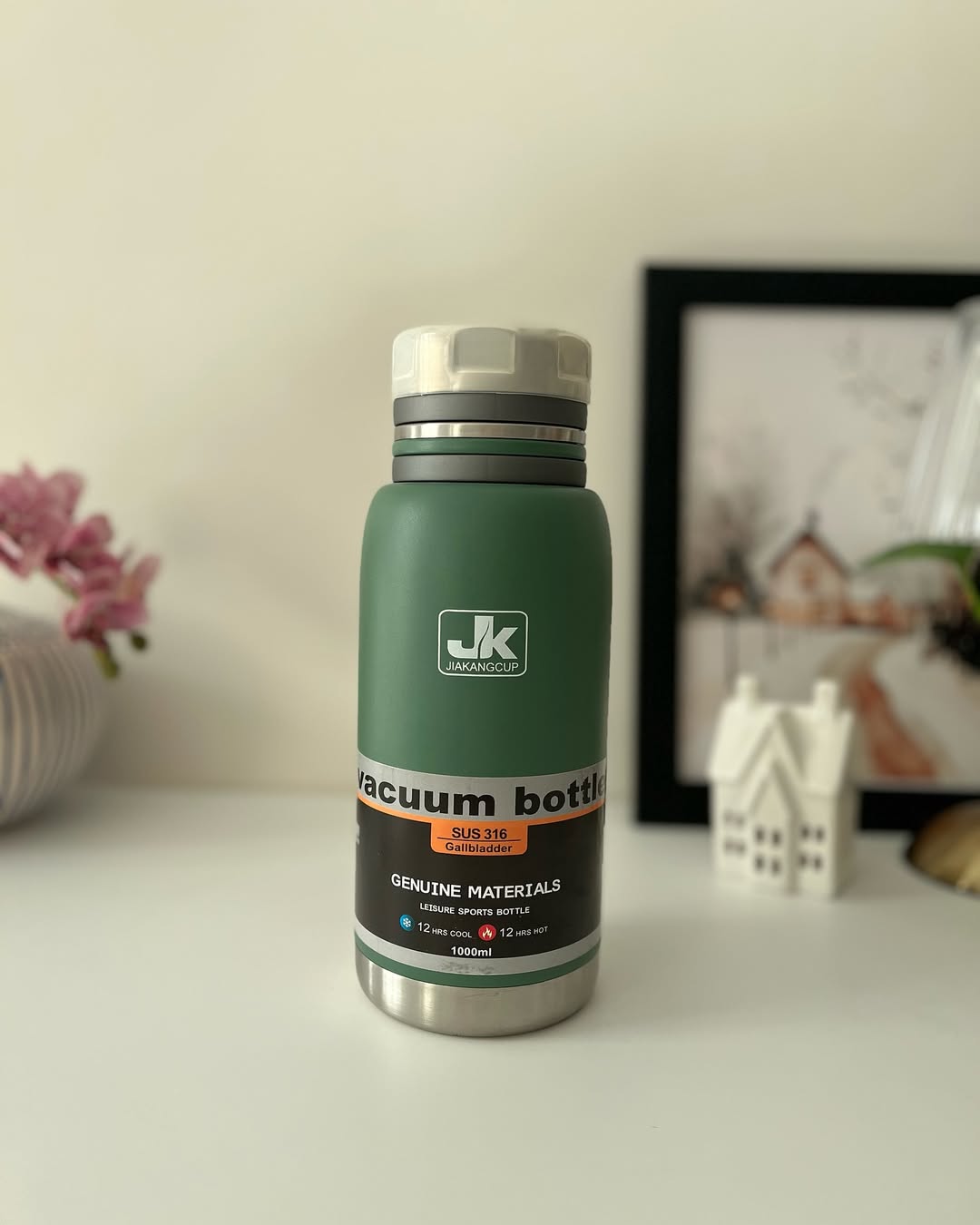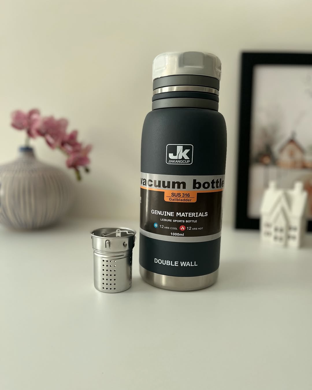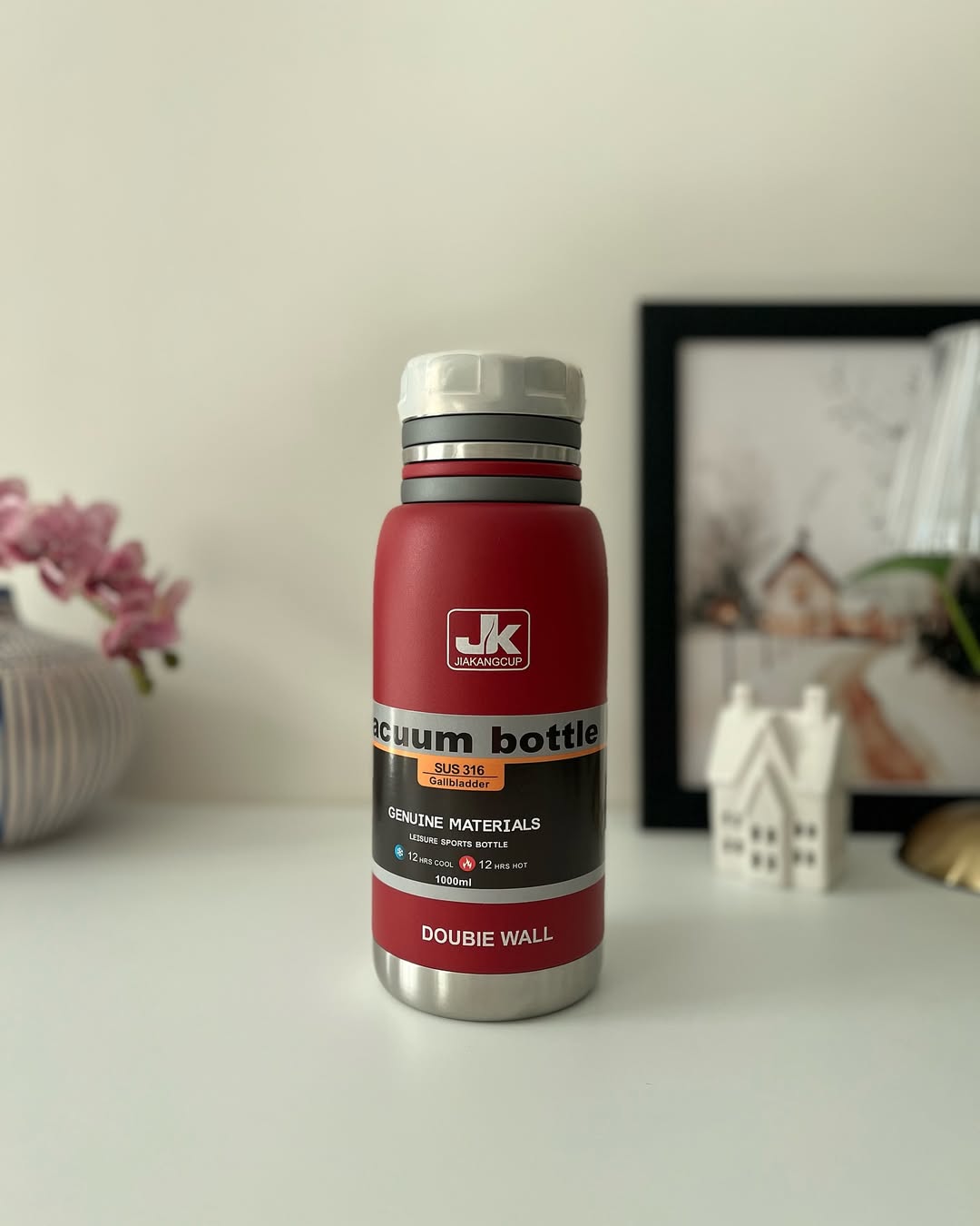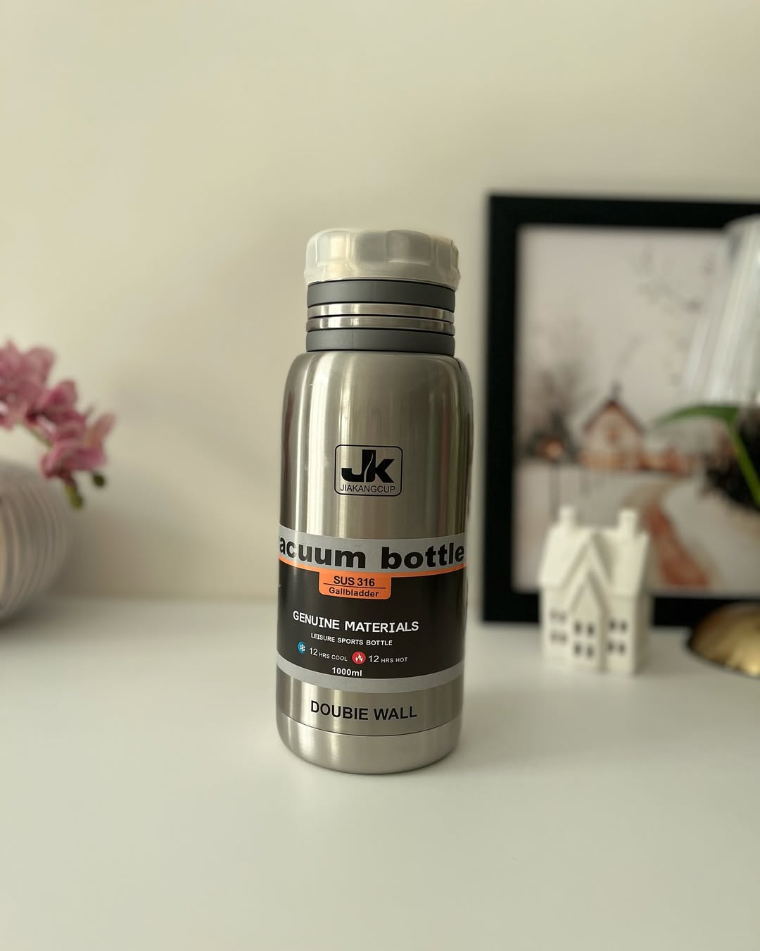 فلاسک با کیفیت عالی از برند JK با نگهداری دمای طولانی فلاسک استیل JK دو جداره استیل ۳۱۶ حجم یک لیتر نگهداری دمای سرد و گرم .