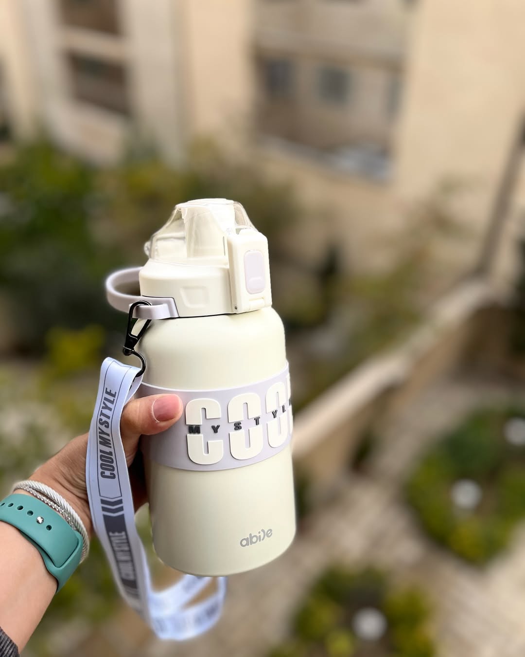 یه قمقمه استیل بی نظیر وارداتی و کیفیت عالی تا 4 ساعت نگهداری دمای گرم بیشتر از ۶ ساعت نگهداری دمای سرد استیل ۳۱۶ ضد زنگ هم نی و هم آسان نوش داره دارای دسته و بند آویز زیره سیلیکونی حجم یک لیتر برای باشگاه و کمپینگ عالیه