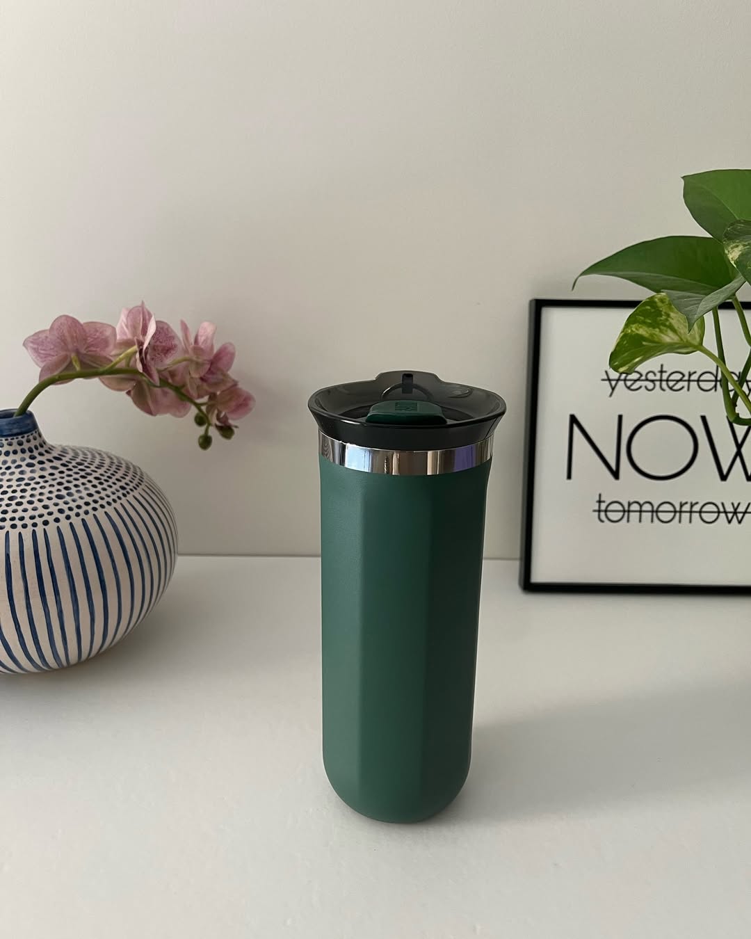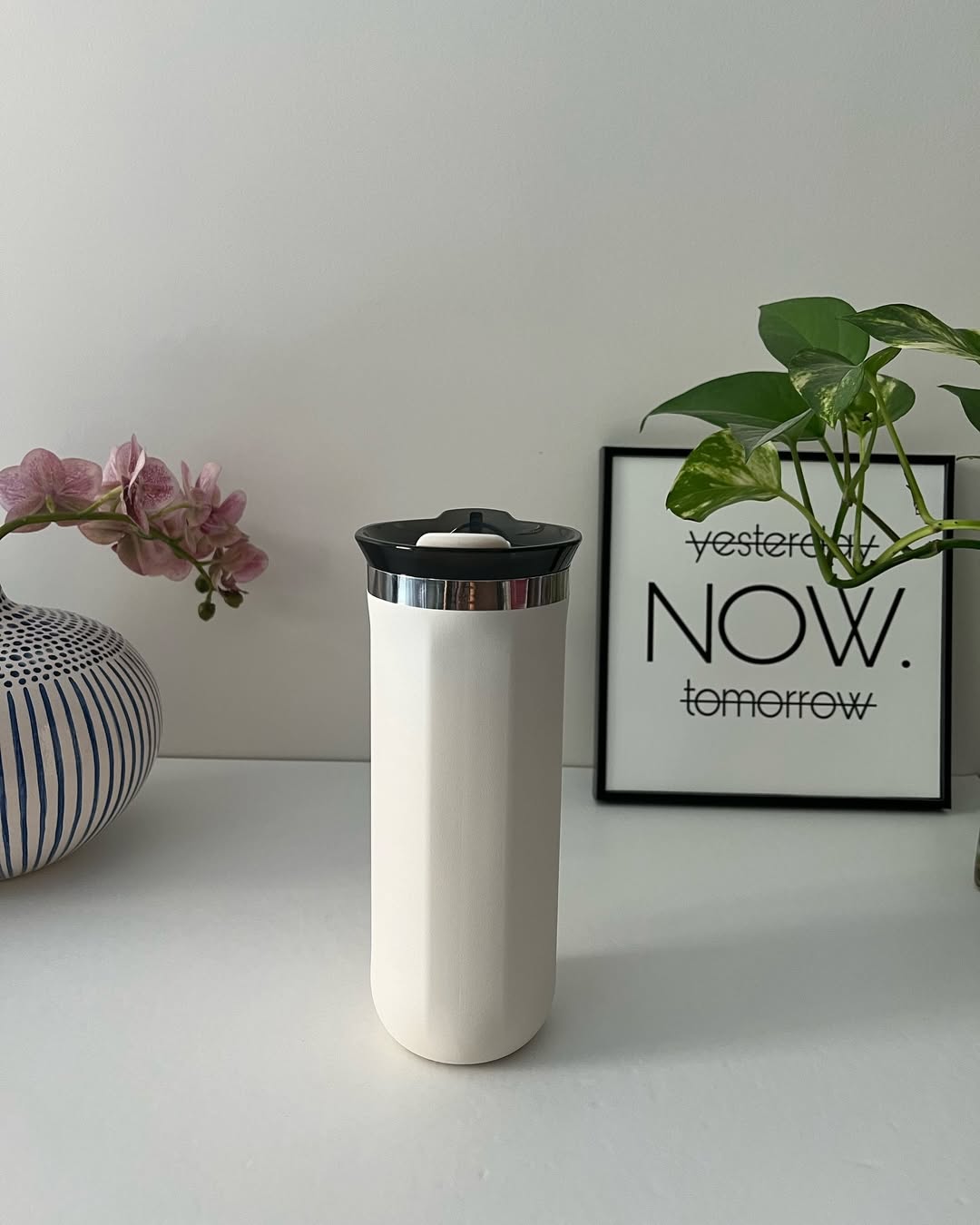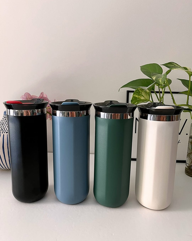تراول متاگ در اکرولیک استیل با کیفیت ۳۰۴ دو جداره حجم 500 میلی لیتر دارای بند طراحی خاص ۴ تا رنگ جذاب مشکی سفید آبی سبز