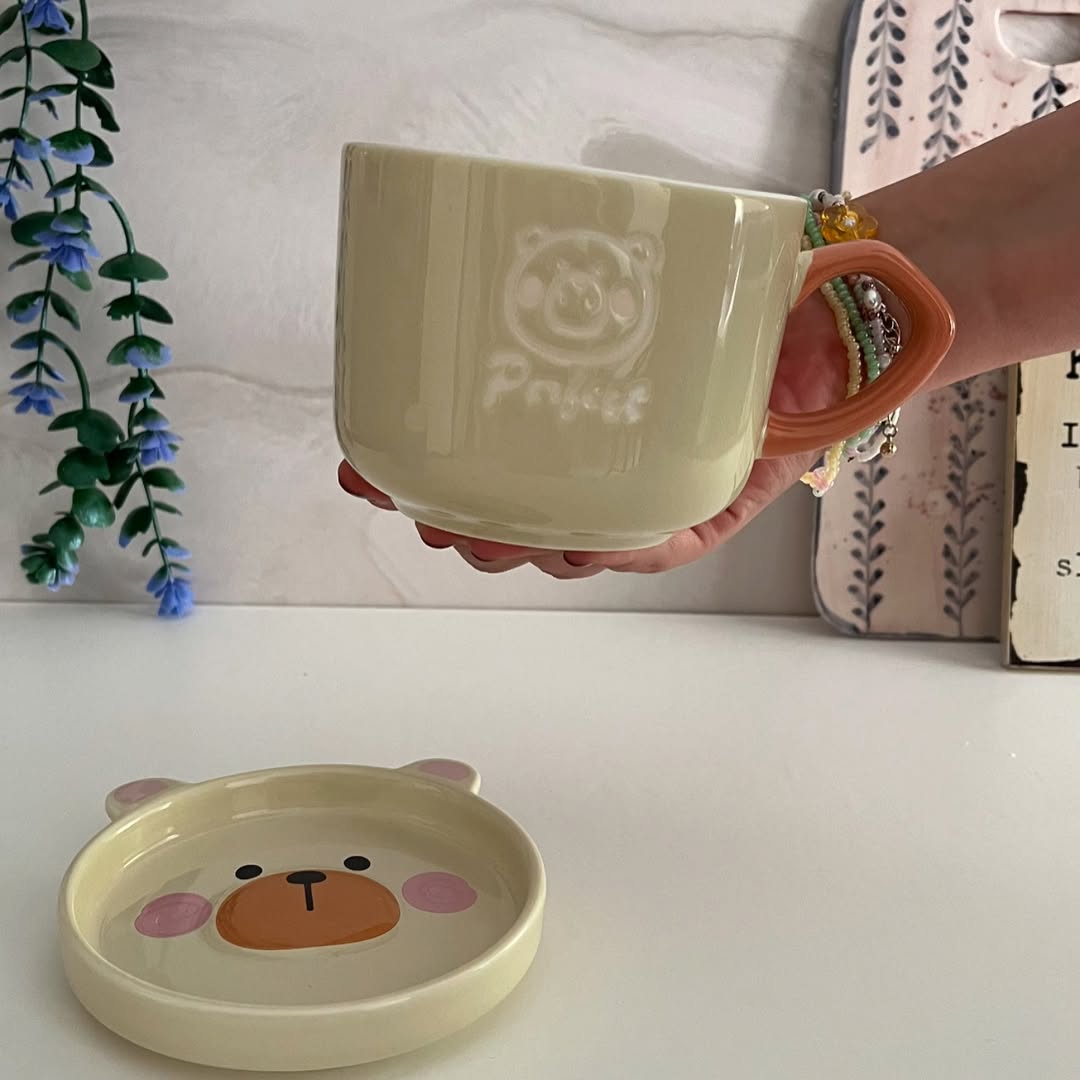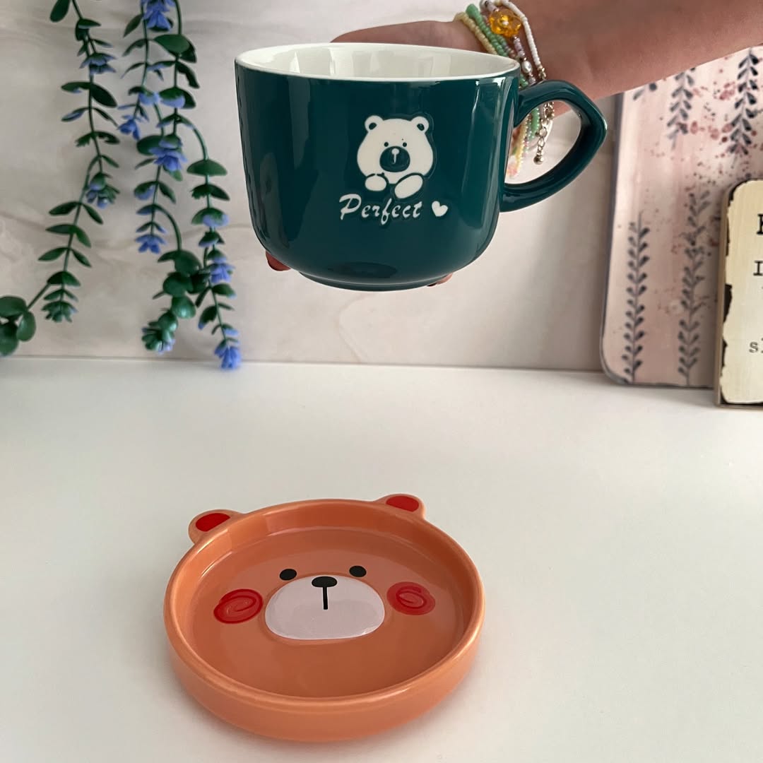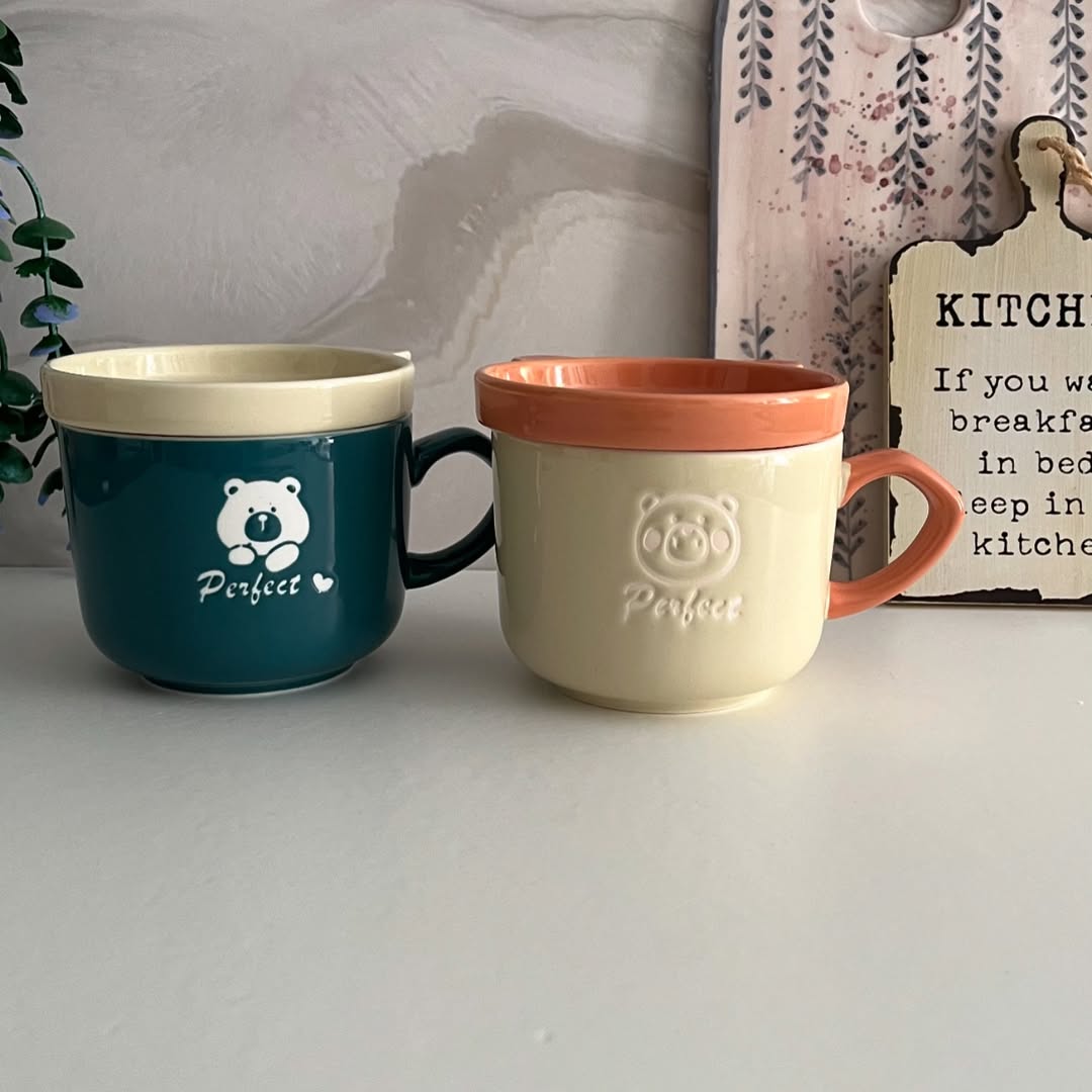 ماگ خرسی در دار دو رنگ سبز و کرم جنس با کیفیت وارداتی