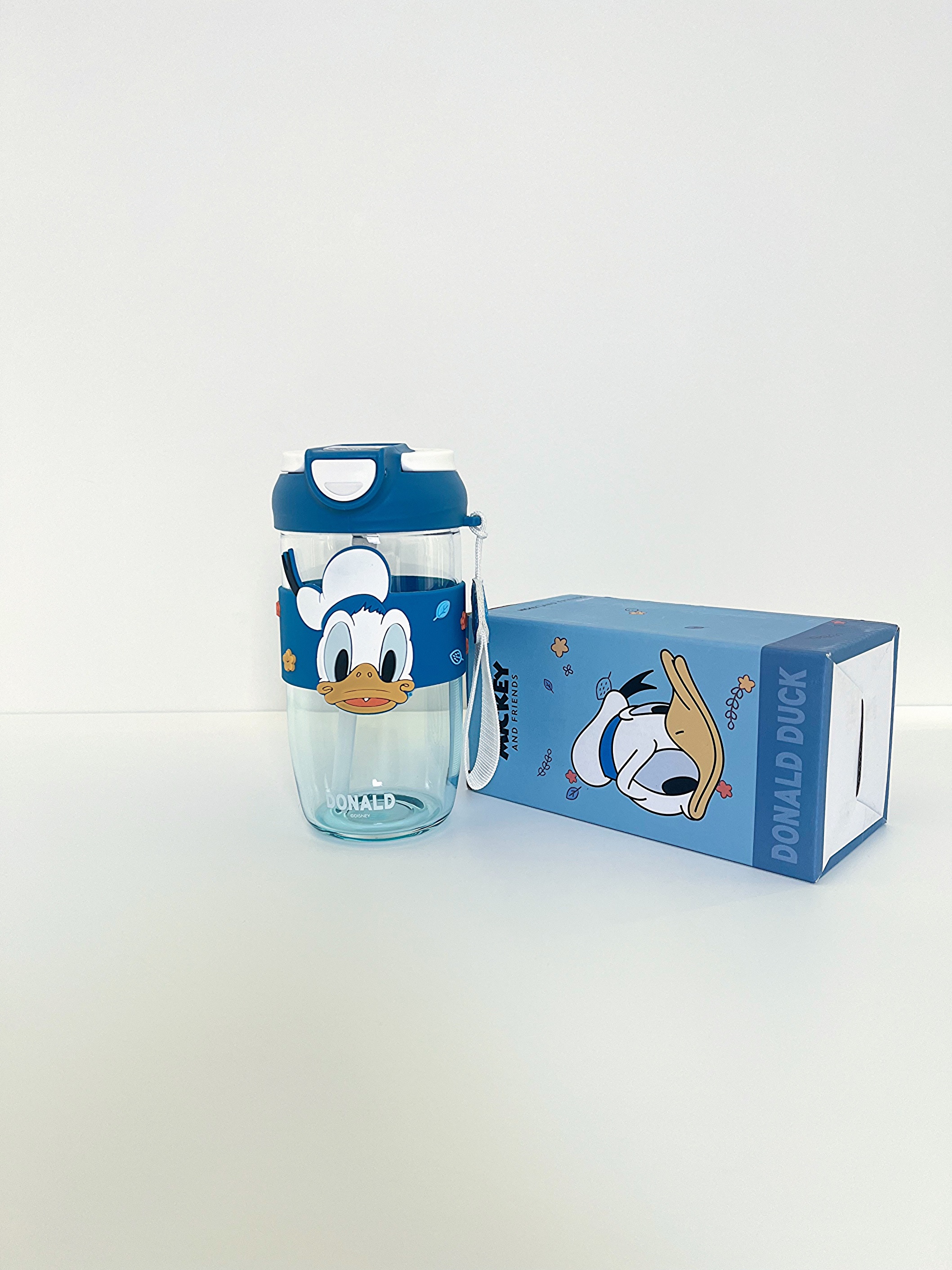 ماگ اسموتی شیشه ای دان داک برند دیزنی . حجم 500 میلی لیتر . دارای کمربند سیلیکونی و بند آوریز . دوحالته نی دار و آسان نوش